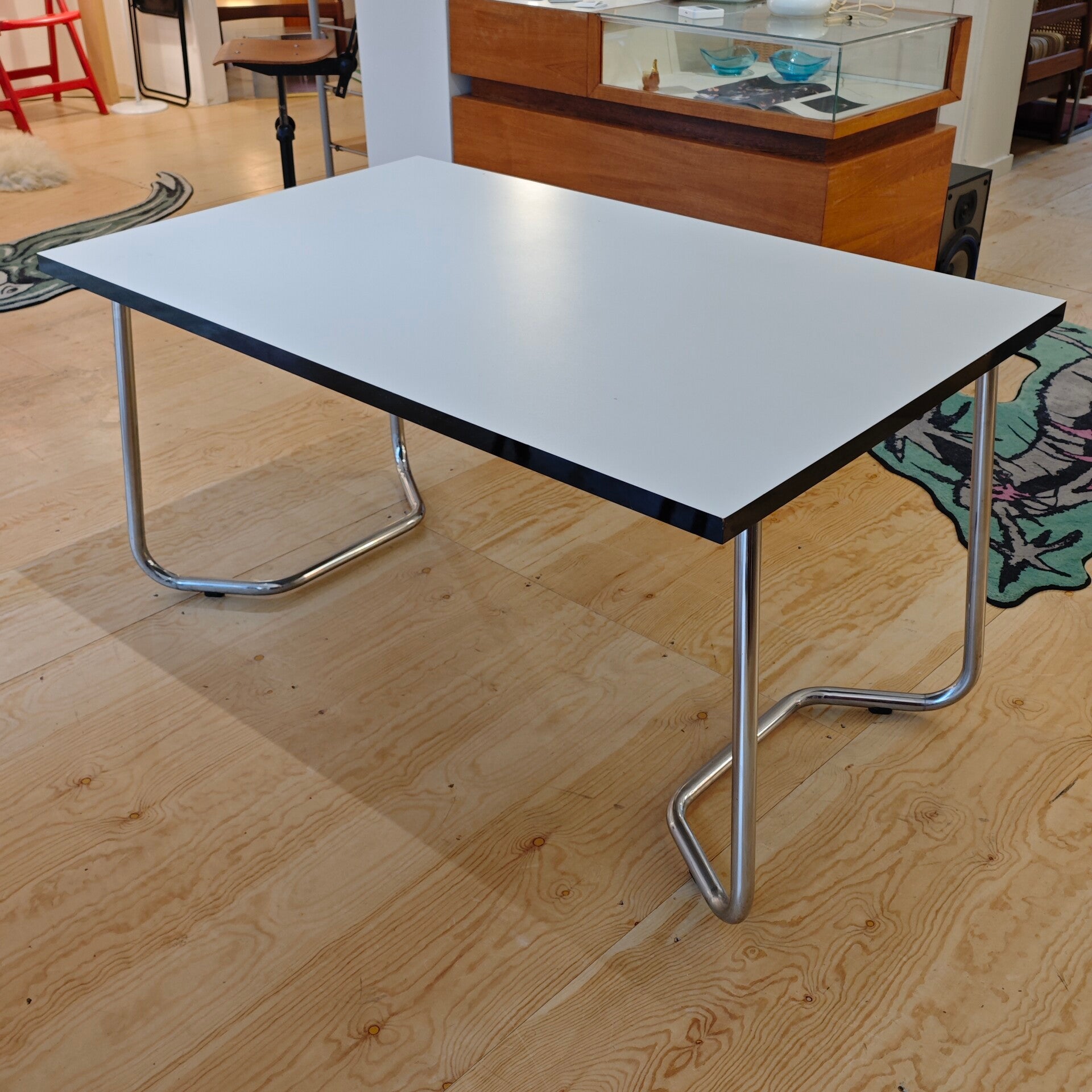 Deze mooie eettafel is nog in goede vintage staat. Hier en daar zijn er wat lichte gebruikssporen te vinden op het witte blad. Verder is die nog erg netjes. Het frame ziet er nog goed uit en de poten glimmen nog netjes. Een praktische een mooie vintage eettafel!