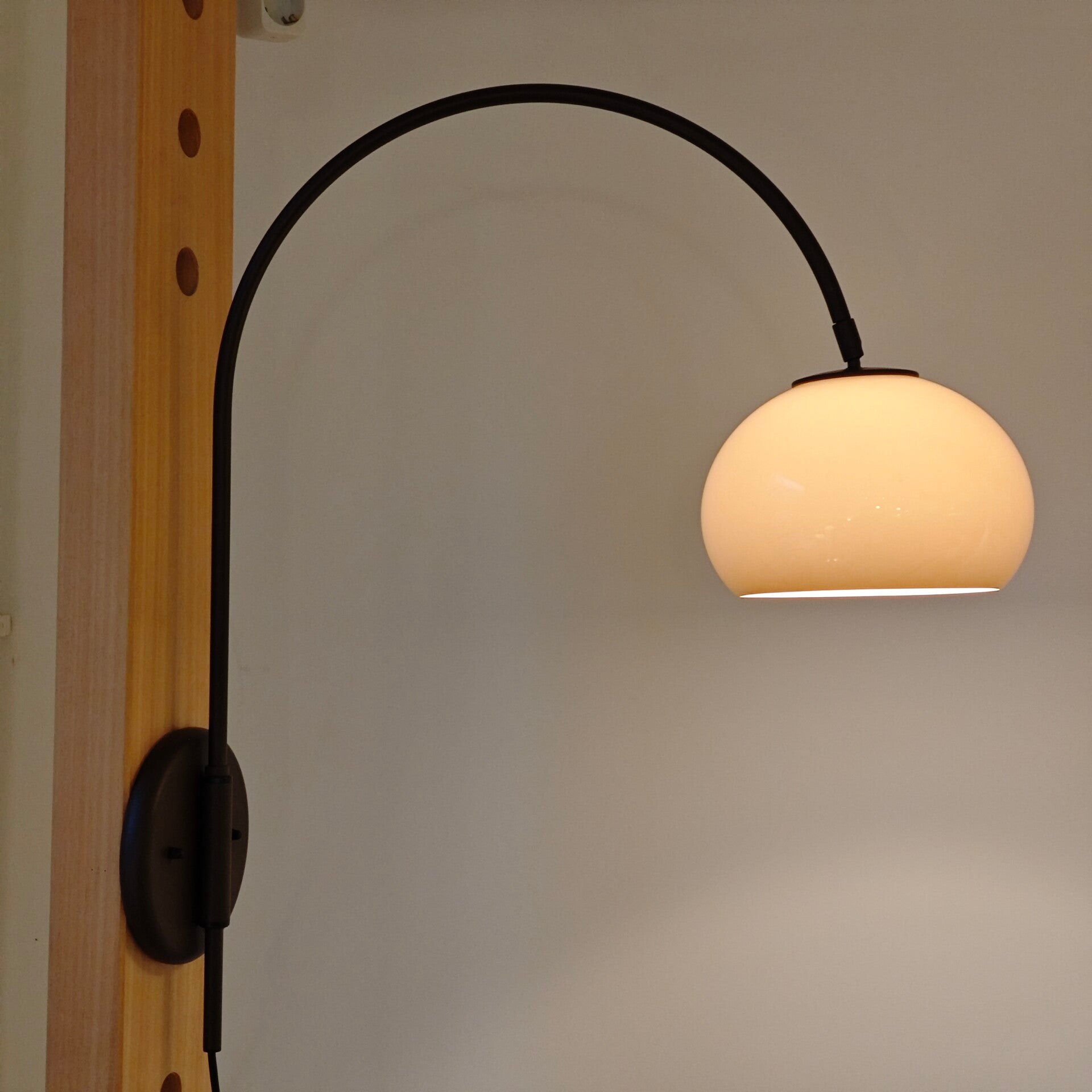 Deze prachtige wandlamp is nog in zeer goede vintage staat. Op de beige kap zitten een paar krasjes maar verder is die nog erg netjes. De bruine metalen stang kan bewogen worden wat het een erg praktische lamp maakt. Ook het beige kapje kan bewogen worden. Een zeer sfeervolle en praktische lamp voor in elk interieur!