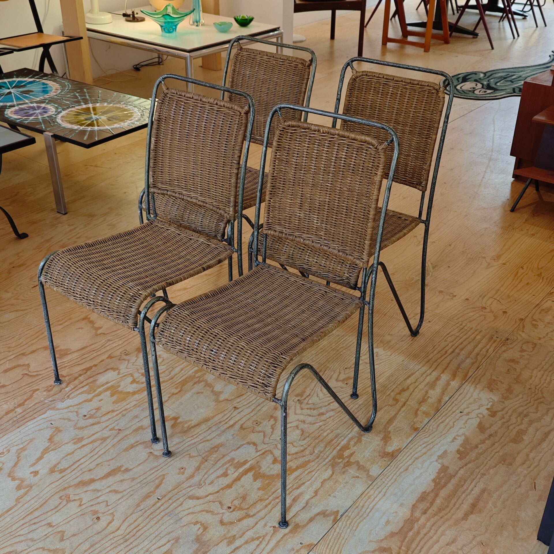 Dit prachtige setje stoelen is nog in goede vintage staat. Er zitten wat gebruikssporen op de frames en hier en daar ook in het riet. Verder zijn ze nog netjes. Dit stijlvolle setje stoelen is ook nog eens stapelbaar!