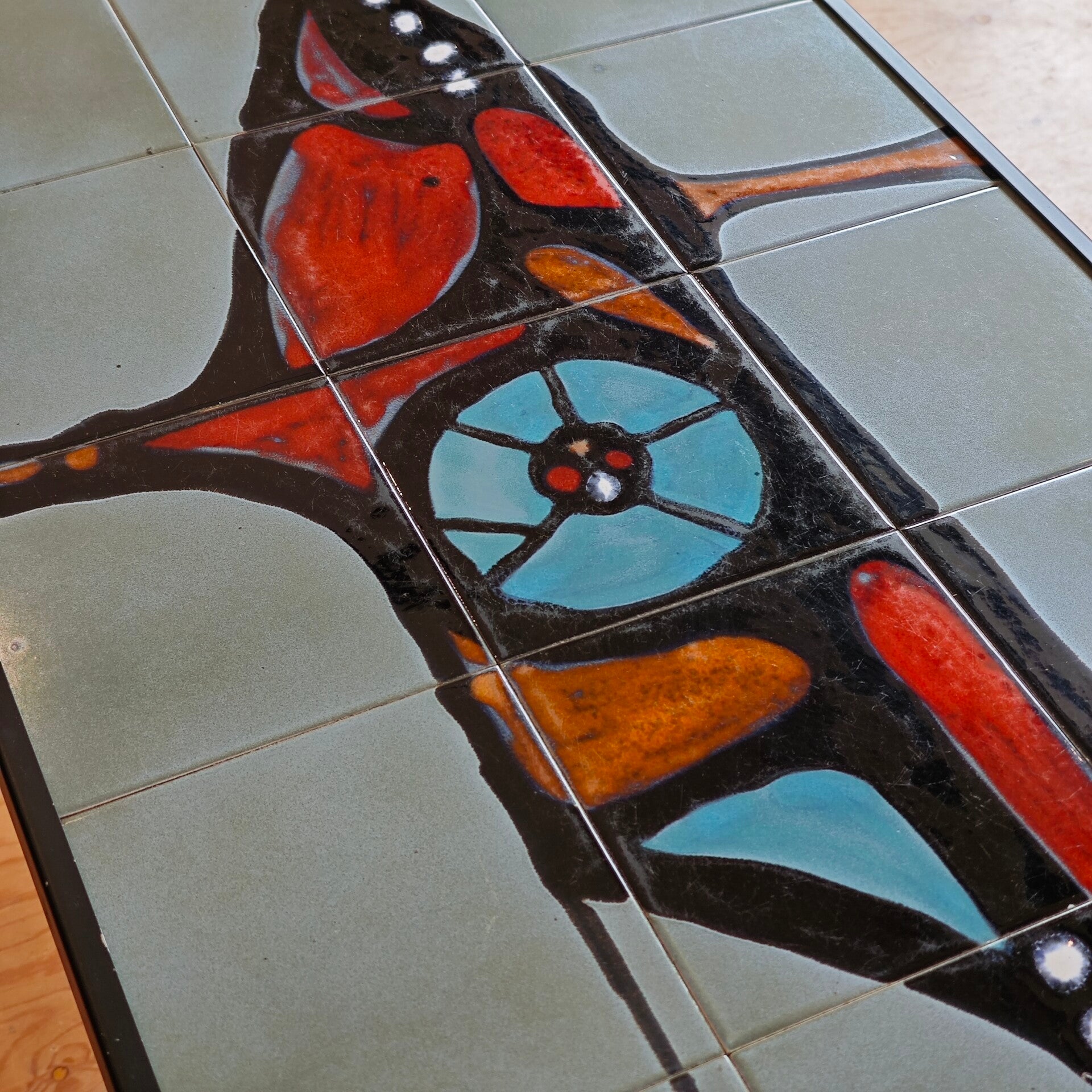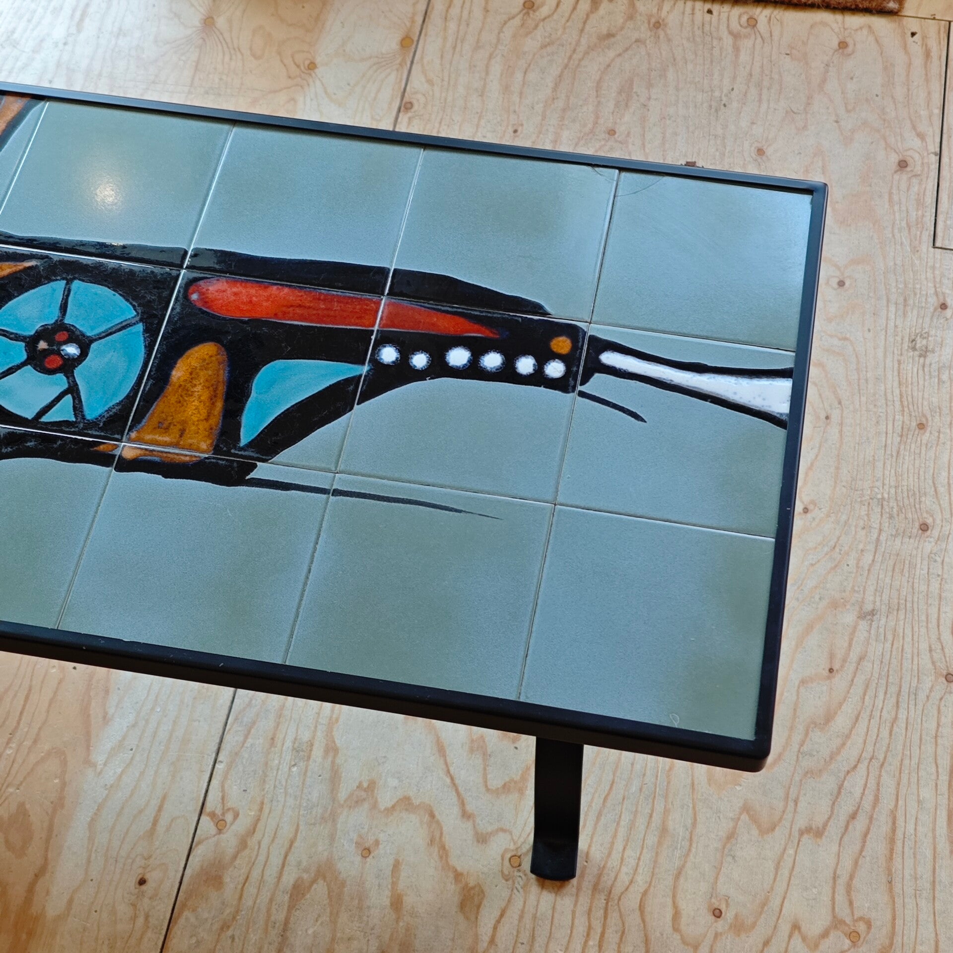 Deze bijzondere salontafel is in goede vintage staat. 2 tegels hebben helaas en barst maar verder is die nog erg netjes. Het onderstel ziet er keurig uit en geeft het een leuke sfeer. Deze tafel heeft een mooi abstract patroon wat hem erg uniek maakt.