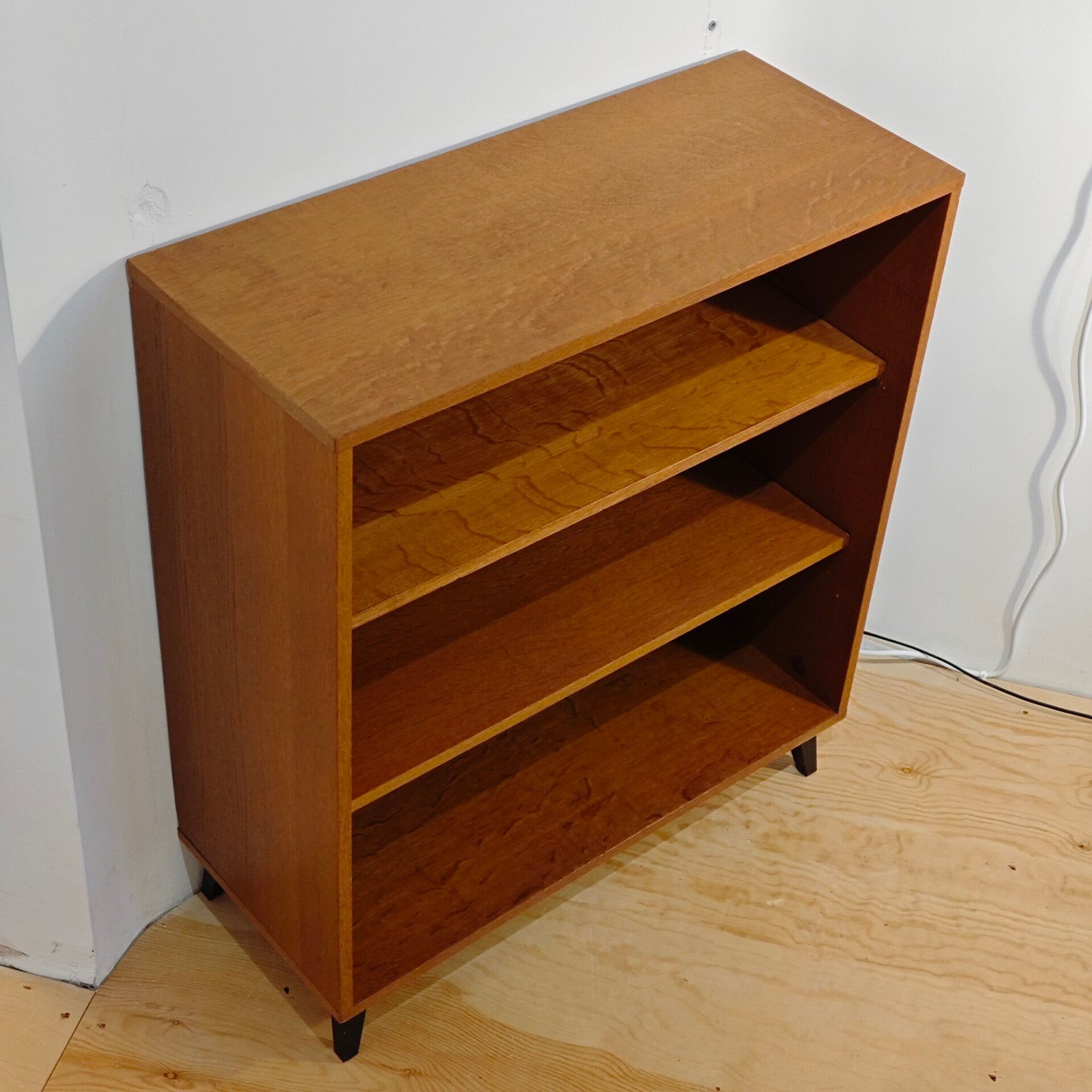 Deze leuke boekenkast is nog in goede vintage staat. Hier en daar zitten langs de rand lichte beschadigingen. Verder is die nog erg netjes. Een praktisch en stijlvol kastje.