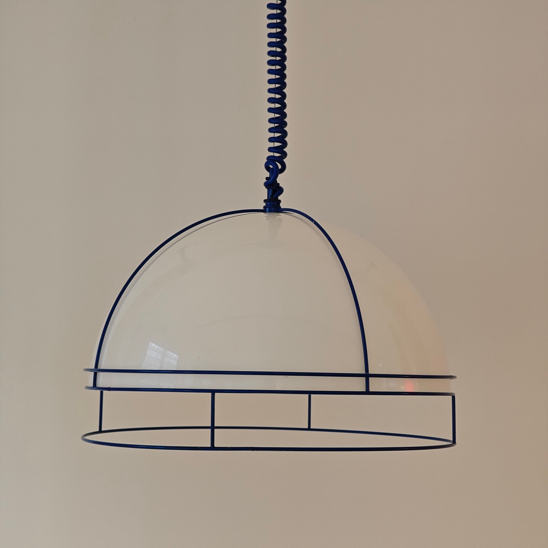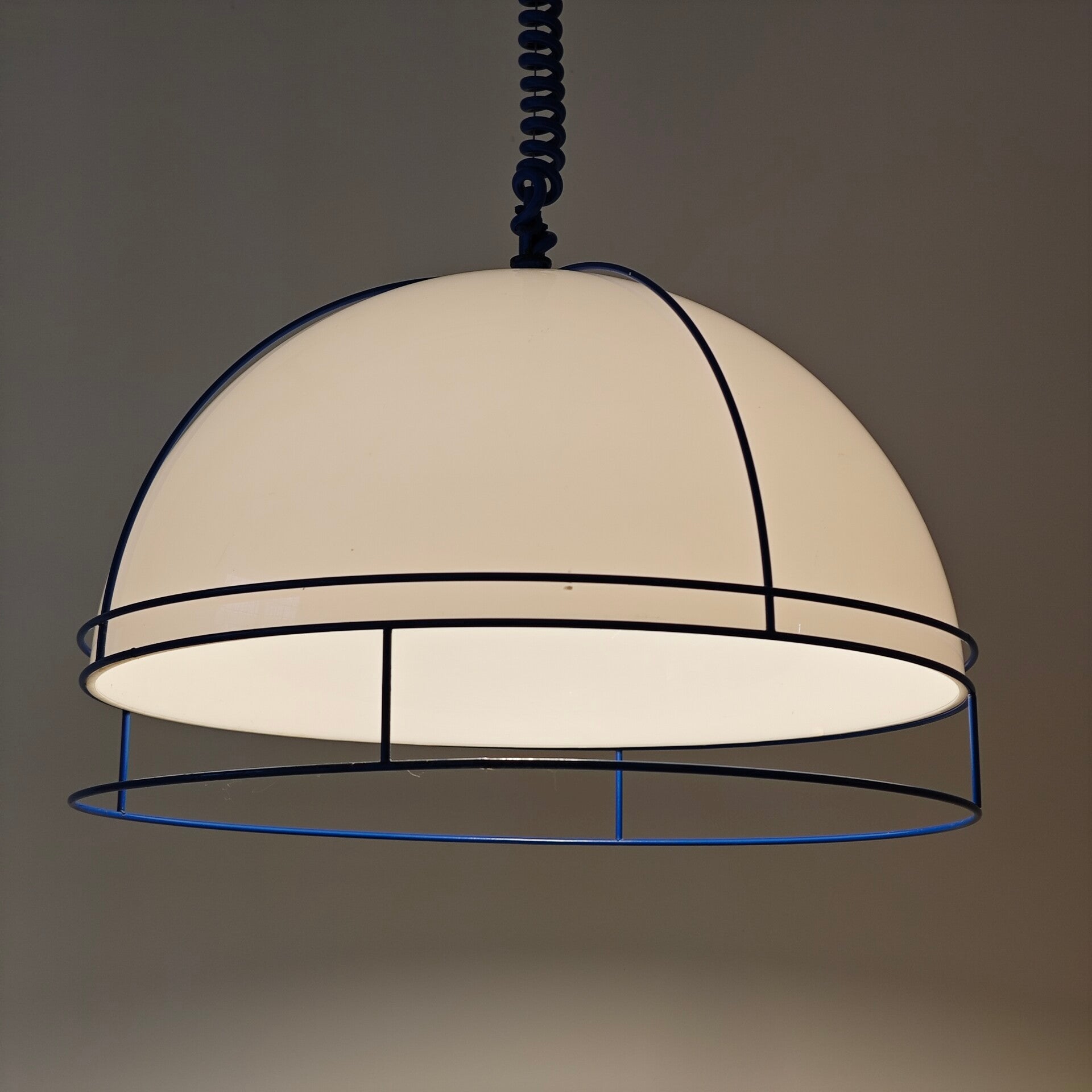 Deze leuke lamp is nog in goede vintage staat. Op de witte kap zitten een paar kleine plekjes maar verder is die nog erg netjes. Door de kap geeft deze lamp fijne gedempt licht.
