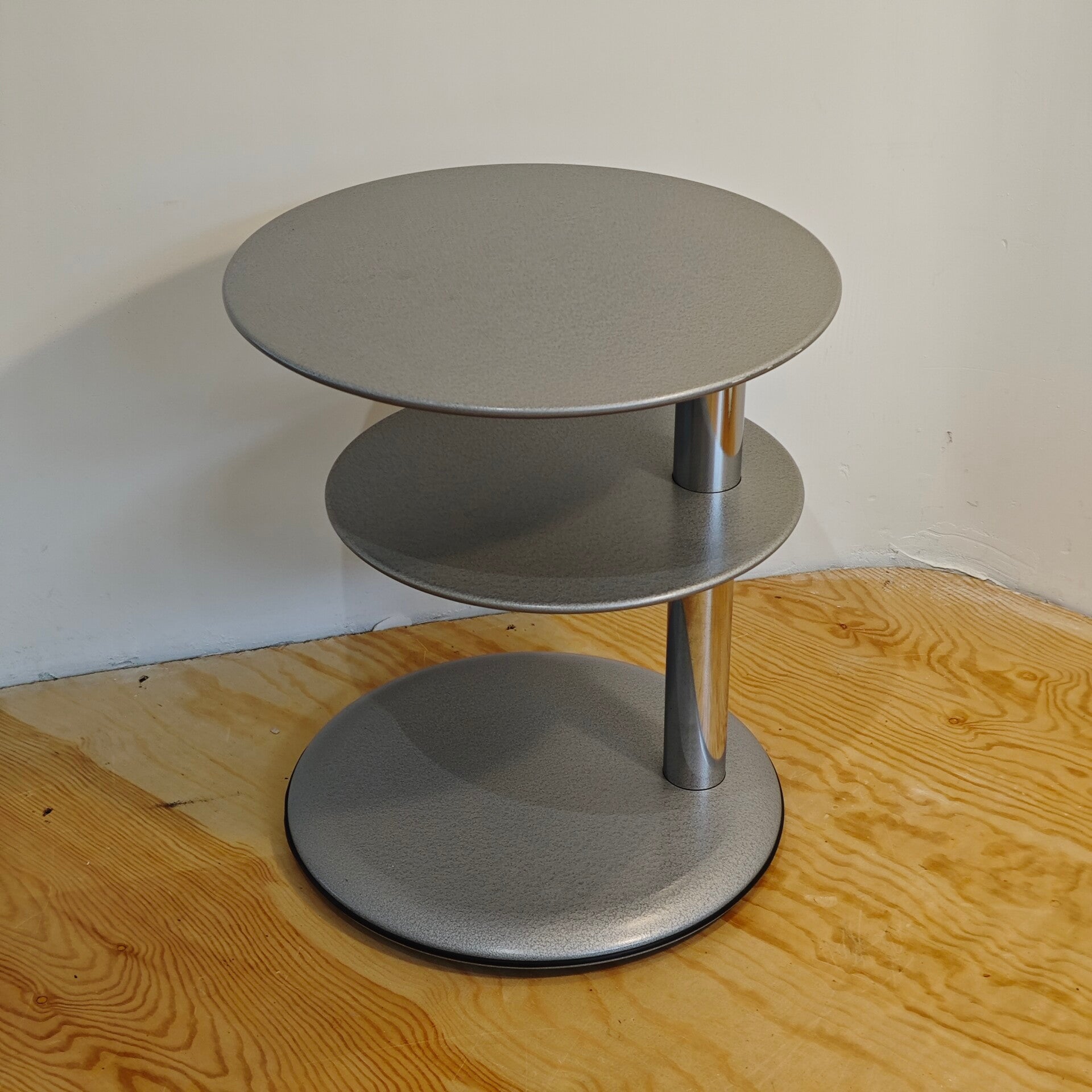 Dit leuke tafeltje is nog in erg goede vintage staat. Op de bladen zitten vrijwel geen gebruikssporen. Het middelste blad kan 360 graden gedraaid worden wat het een erg praktisch tafeltje maakt.