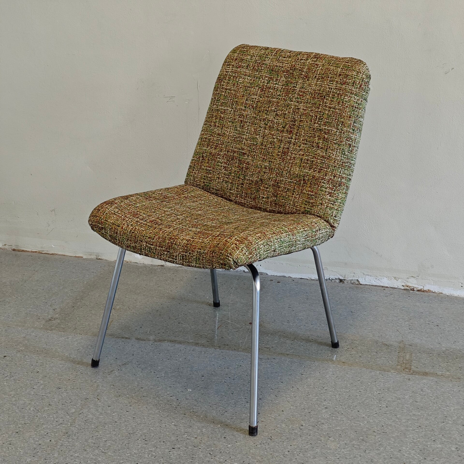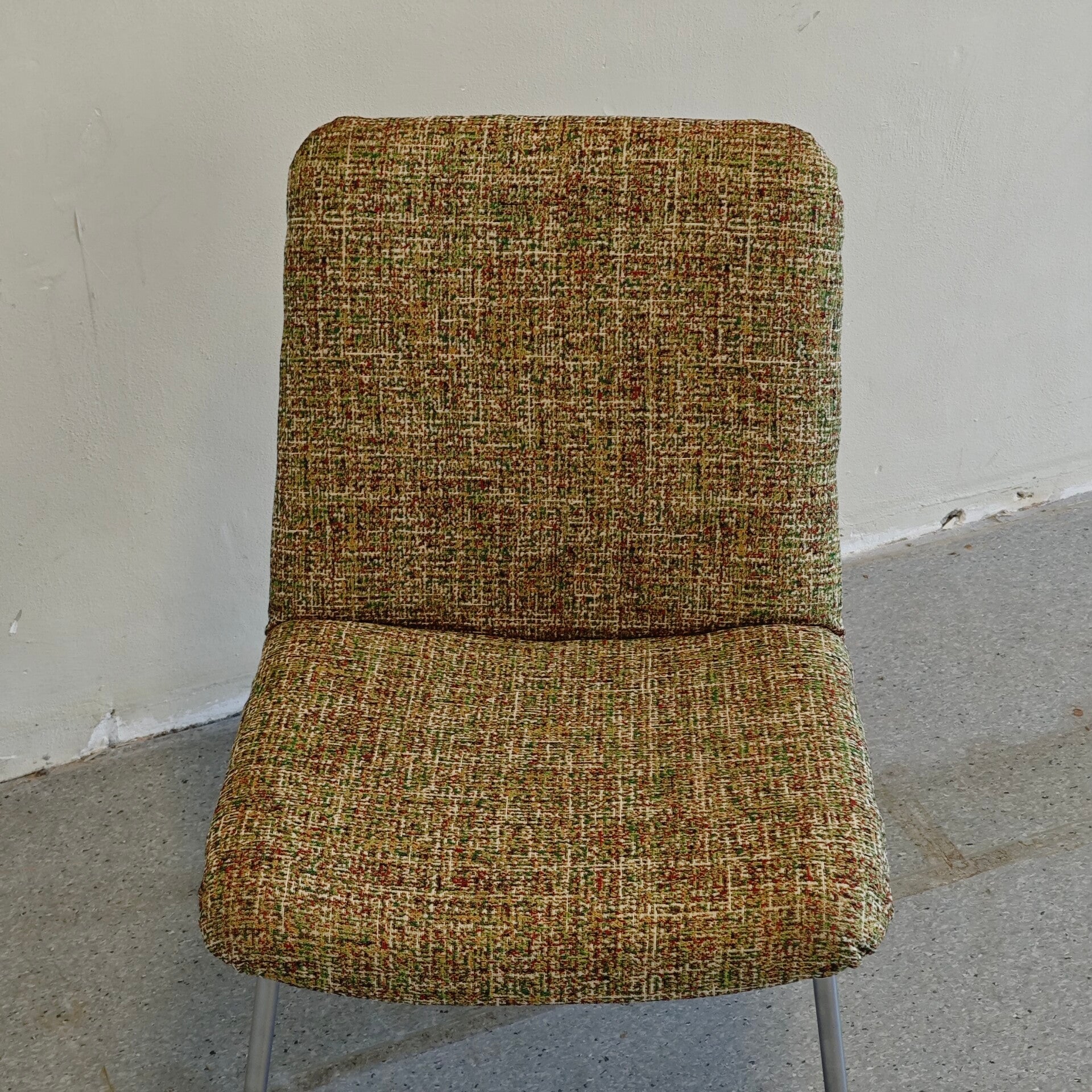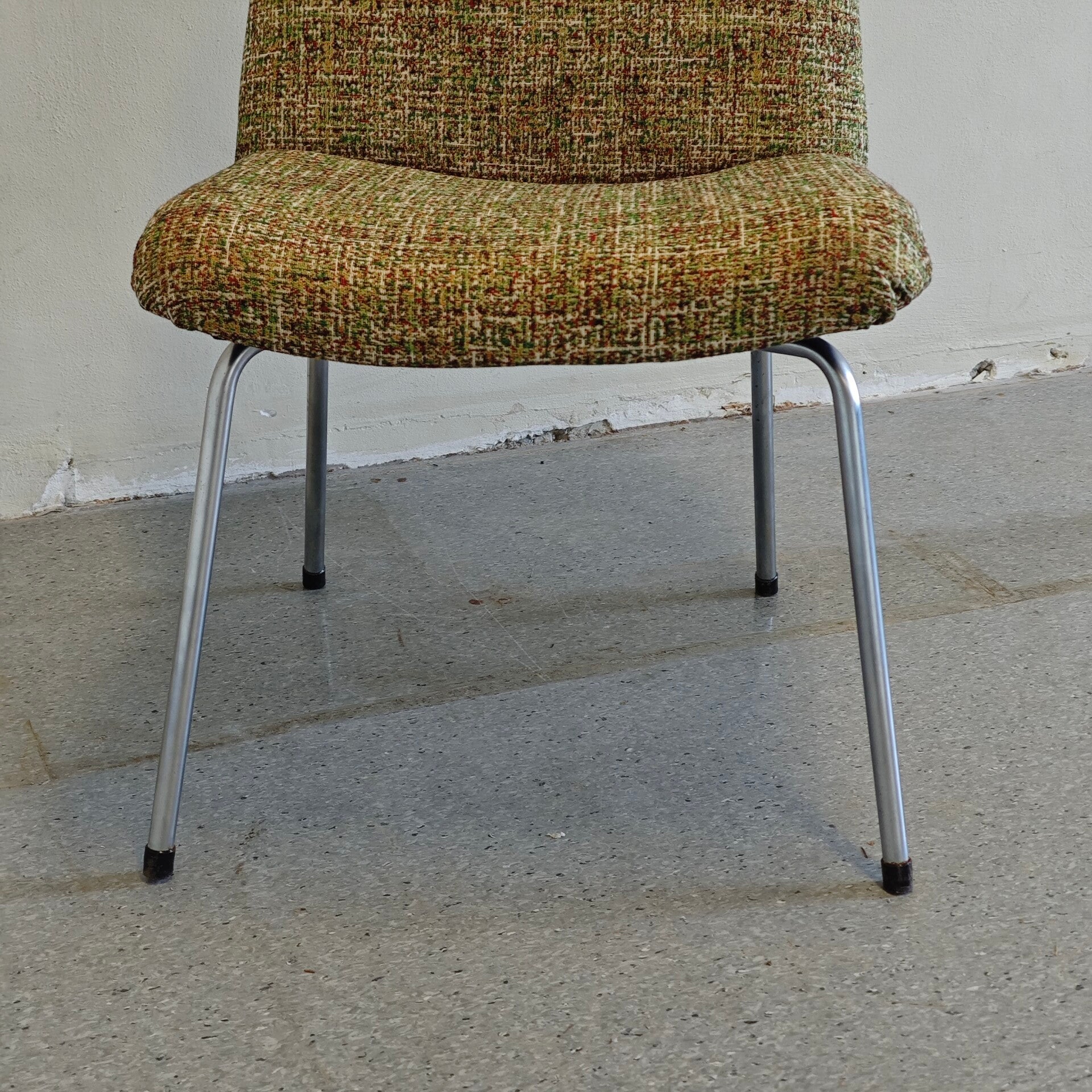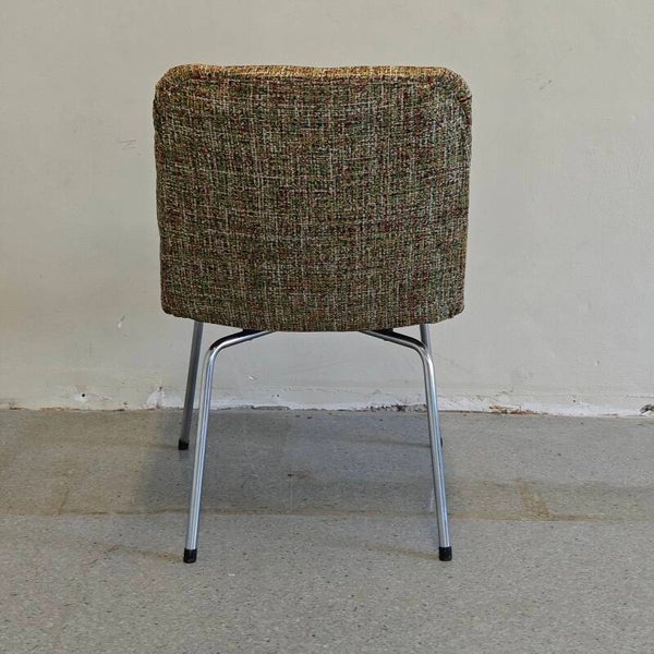 Deze mooie stoel is in goede staat. De originele stof was helaas helemaal versleten is dus vervangen voor een nieuwe. Door de mooie nieuwe interieur stof ziet deze stoel er weer als nieuw uit! 1 schroef aan de onderkant zit helaas een beetje los maar daar merk je weinig van.