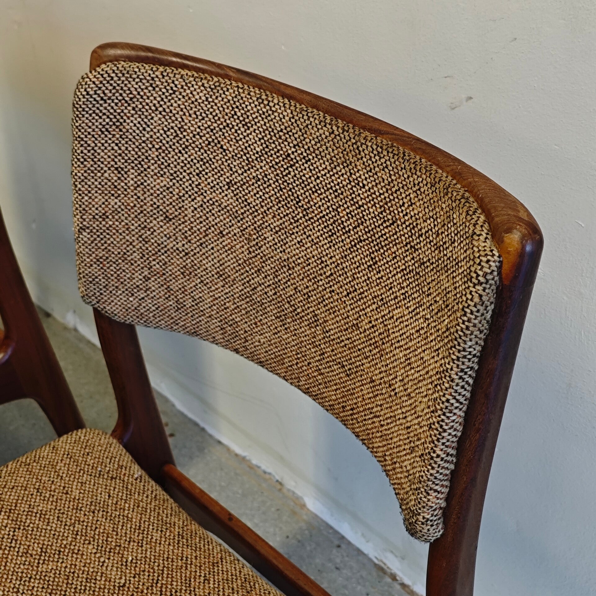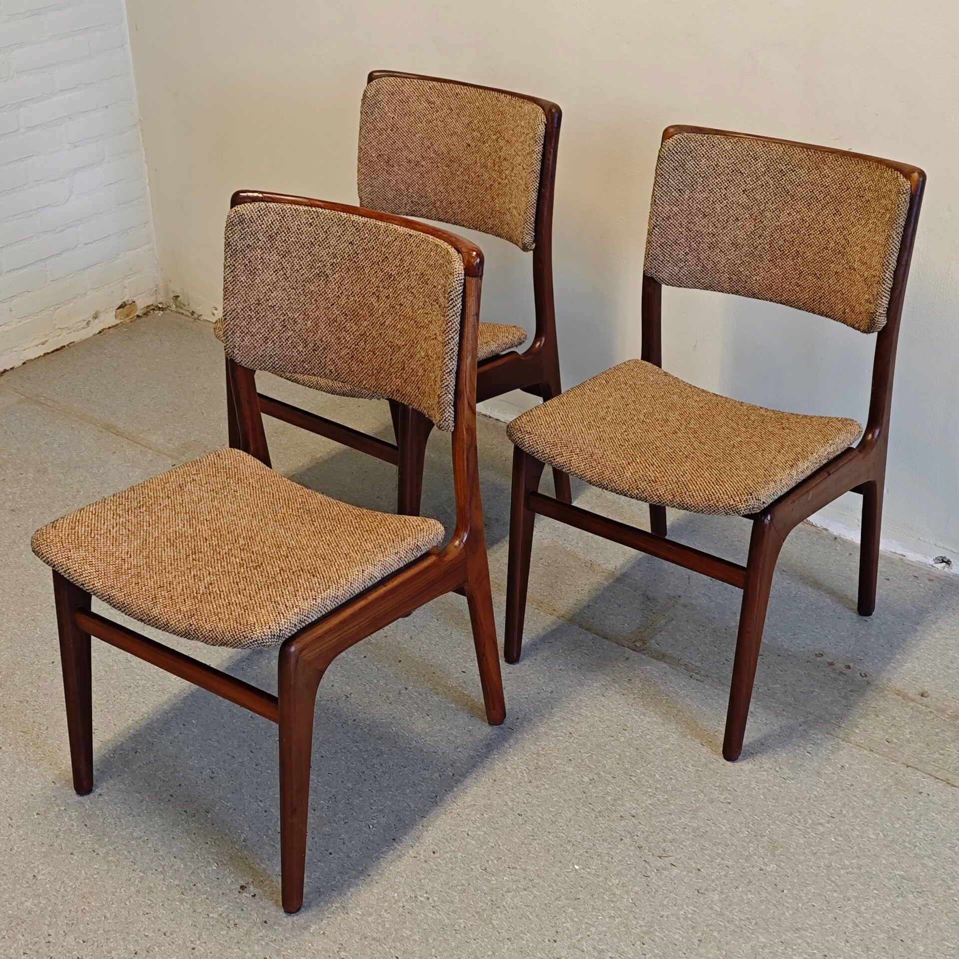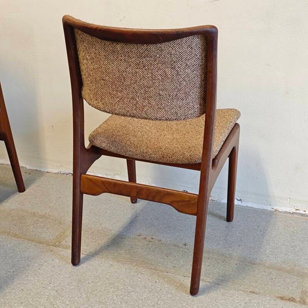 Deze mooie eetkamerstoelen zijn nog in erg goede vintage staat. Het houten frame heeft een laagje olie gekregen waardoor die er weer netjes uit ziet. De stevige interieur stof zit er nog perfect op en heeft vrijwel geen gebruikssporen. Een leuk setje stoelen!