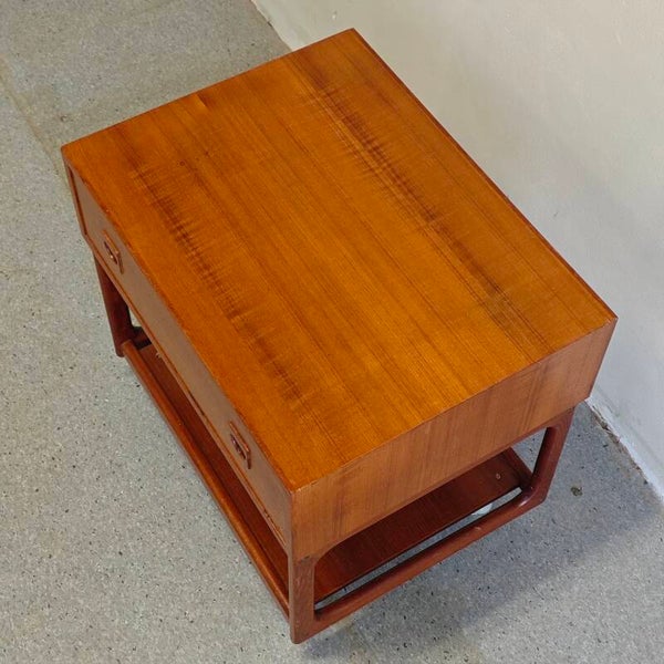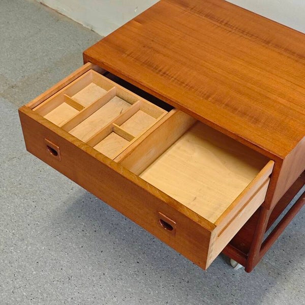Dit prachtige tafeltje is nog in erg goede vintage staat. Er zitten een paar krasjes op het blad maar verder is die nog erg mooi. De wieltjes rollen soepel en de lade gaat makkelijk open. In de lade zit een extra laadtje voor kleine spulletjes. Een erg stijlvol en praktische tafeltje!